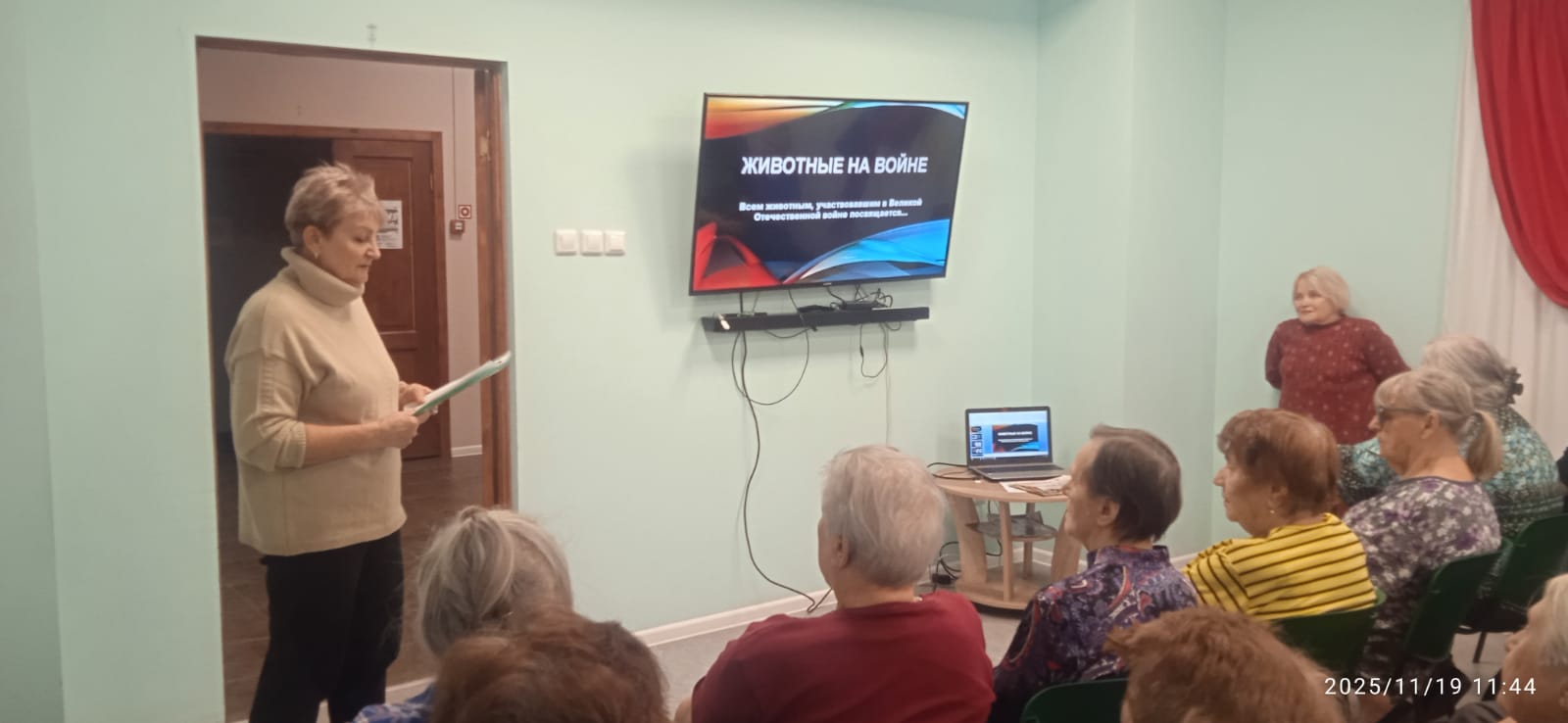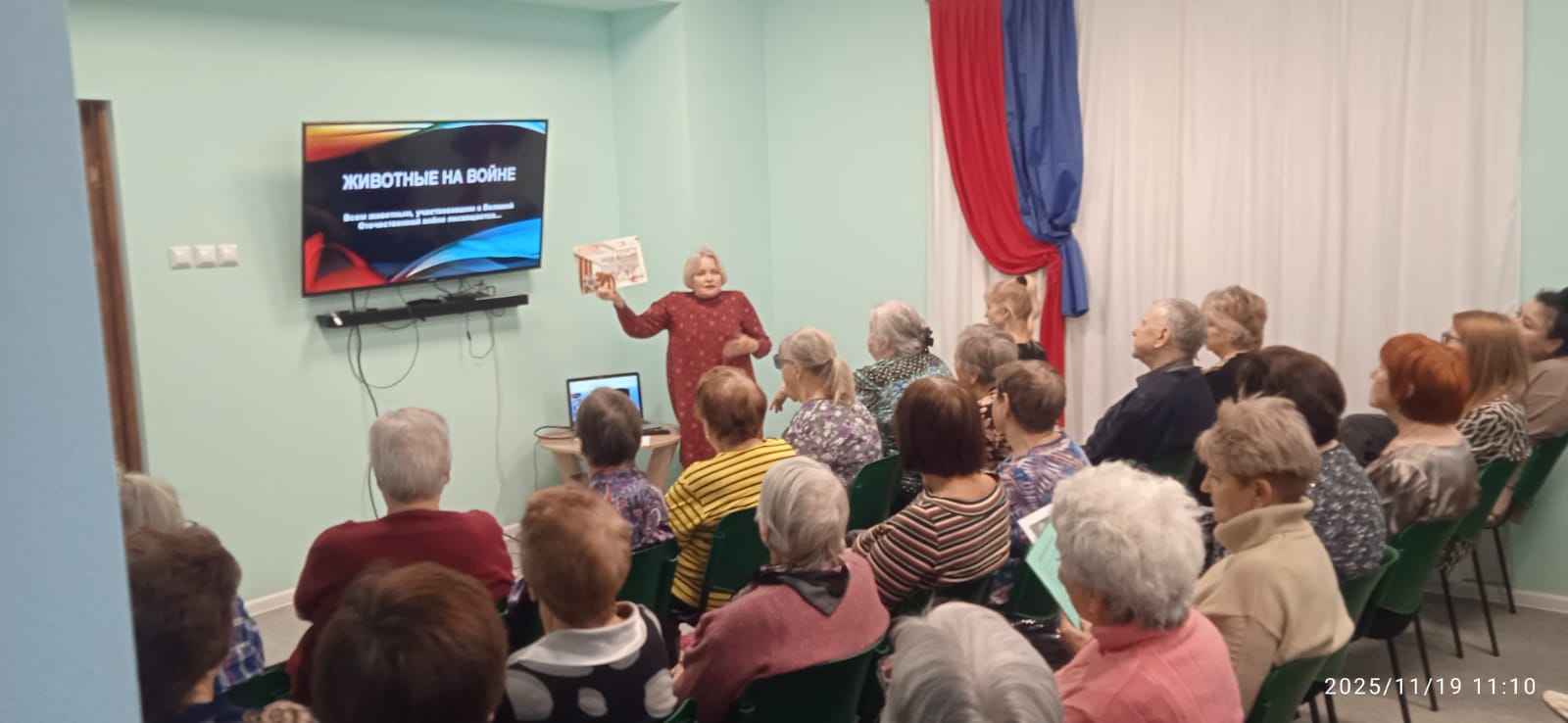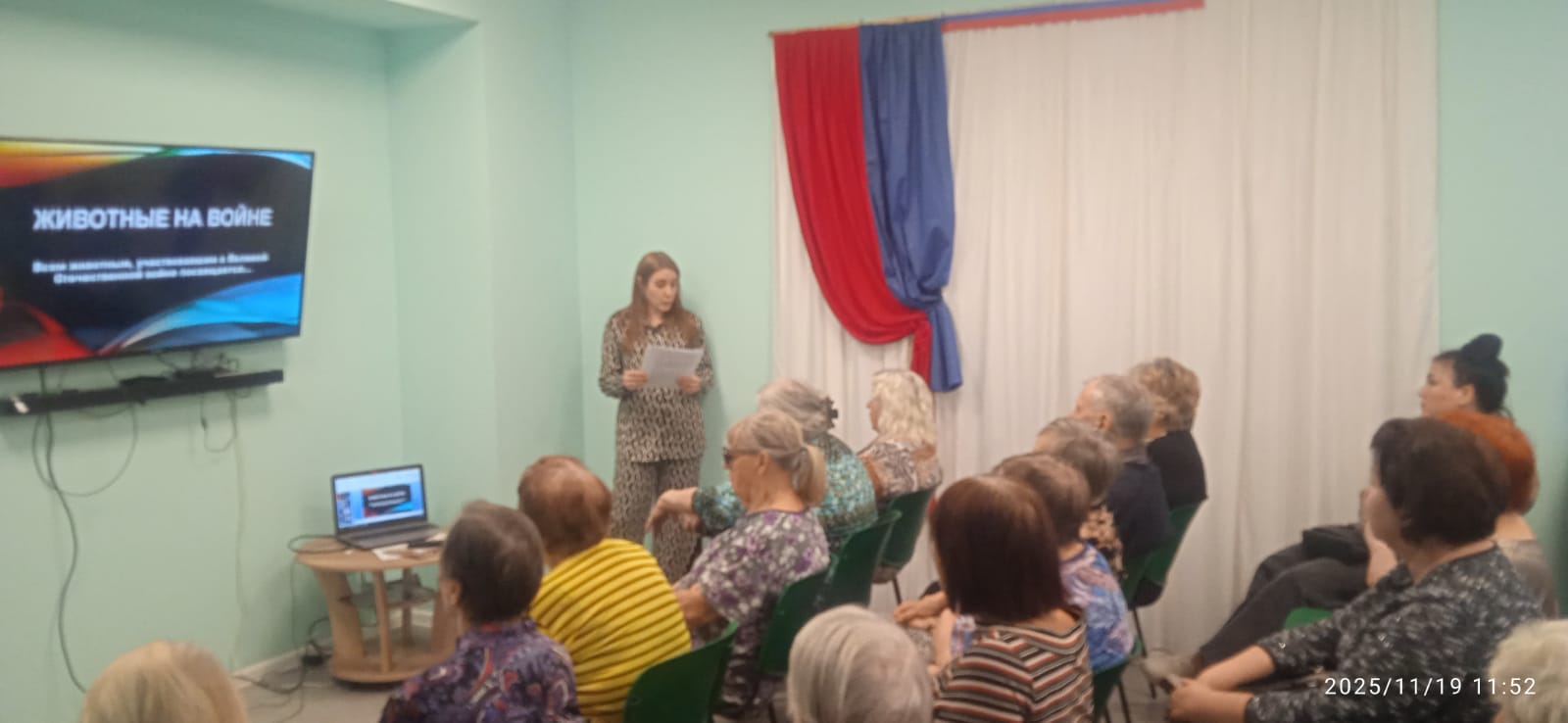 Собравшимся была прочитана увлекательнейшая лекция о роли и вкладе животных в Победу, как на фронте, так и в тылу. Читались и обсуждались стихи и проза, описывающие события в Воронеже во время ВОВ. Были продемонстрированы два анимационных фильма, созданных в студии Центра дневного пребывания: о трагедии в саду Пионеров 13.06.1942 года и о работе волонтёров из числа посетителей ЦДП для нужд СВО.