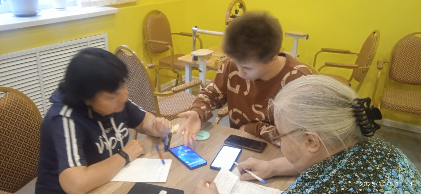 С началом учебного года в Центре дневного пребывания снова возобновились курсы по освоению гаджетов людьми пожилого возраста. Наши волонтеры-студенты математического факультета ВГУ с удовольствием приступили к обязанностям учителей, стараясь помочь разобраться с самыми непонятными для многих ситуациями с мобильными телефонами и планшетами. А ведь в современной жизни это необходимость. Особое внимание уделяется умению вызвать со смартфона жизненно важные службы помощи, заказать продукты и лекарства на дом при плохом самочувствии. И очень востребованным является вопрос, конечно, про фотографии в телефоне.